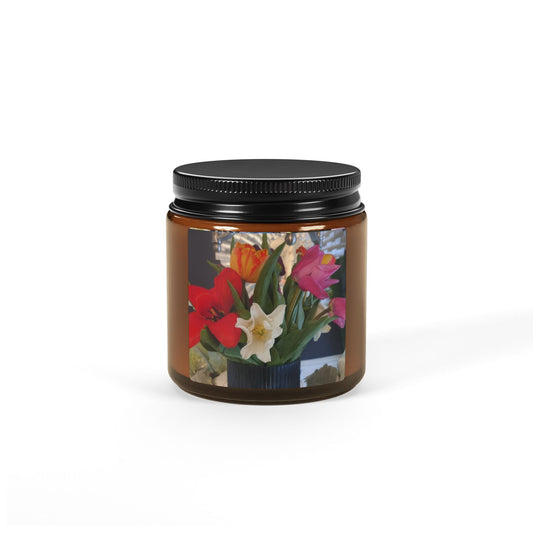 Floral Bouquet Soy Candle — Amber Jar Scented Candle (Multi-Scents)